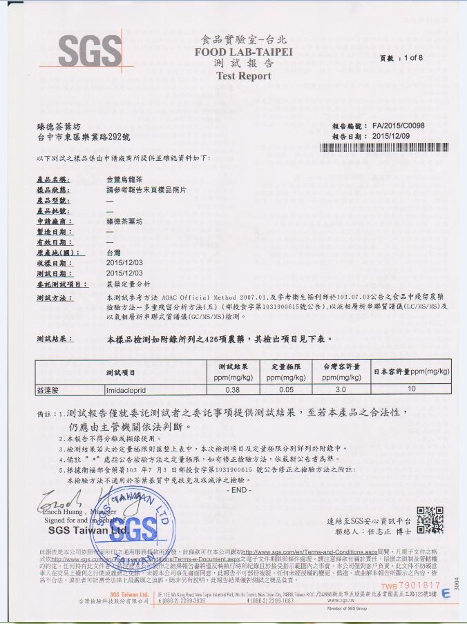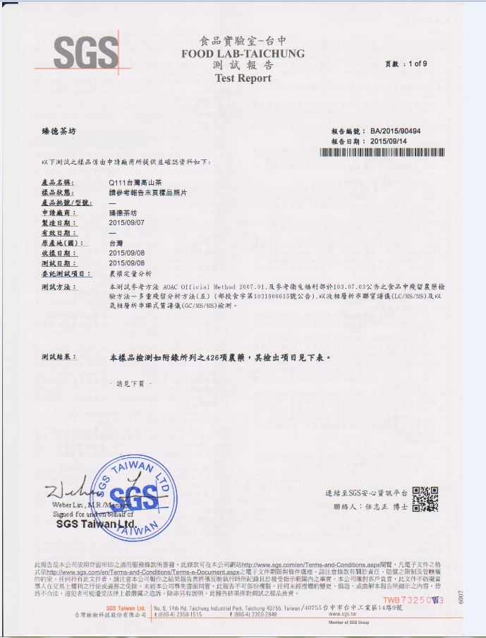 • 臻德茶葉坊最新檢驗報告