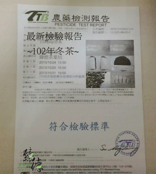 • 102年冬季茶葉最新檢驗報告出爐囉